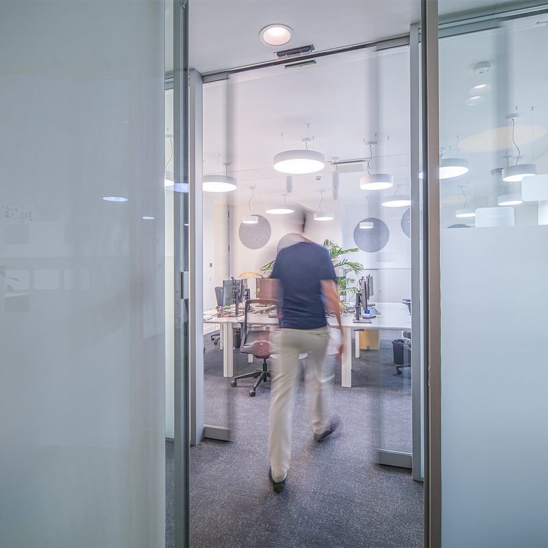V bolj zasebnih delih, kot je sejna soba, Smart Switch omogoča nadzorovano brezstično odpiranje z enostavnim gibom roke le takrat, ko je to potrebno.