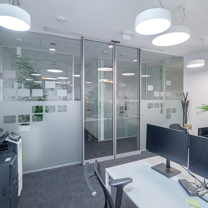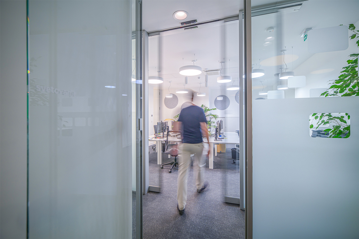 Brezstično delovanje omogoča enostaven dostop vsem obiskovalcem, še posebej osebam z omejeno mobilnostjo. V pisarniškem delu pa ista tehnologija zagotavlja zasebnost, sodoben in urejen videz ter prihrani dragocen prostor v ozkih hodnikih.