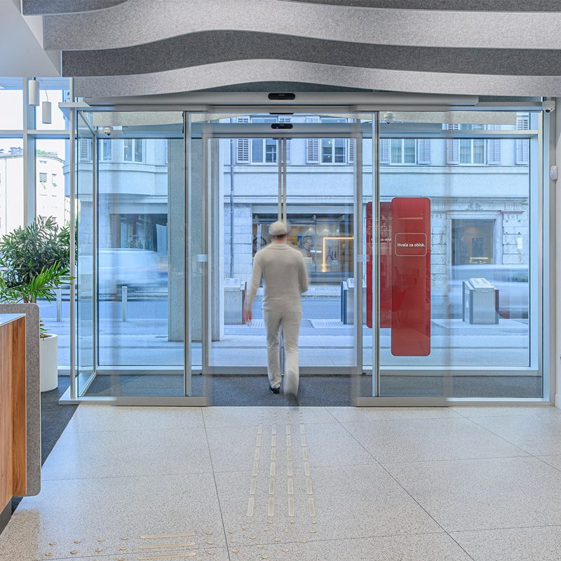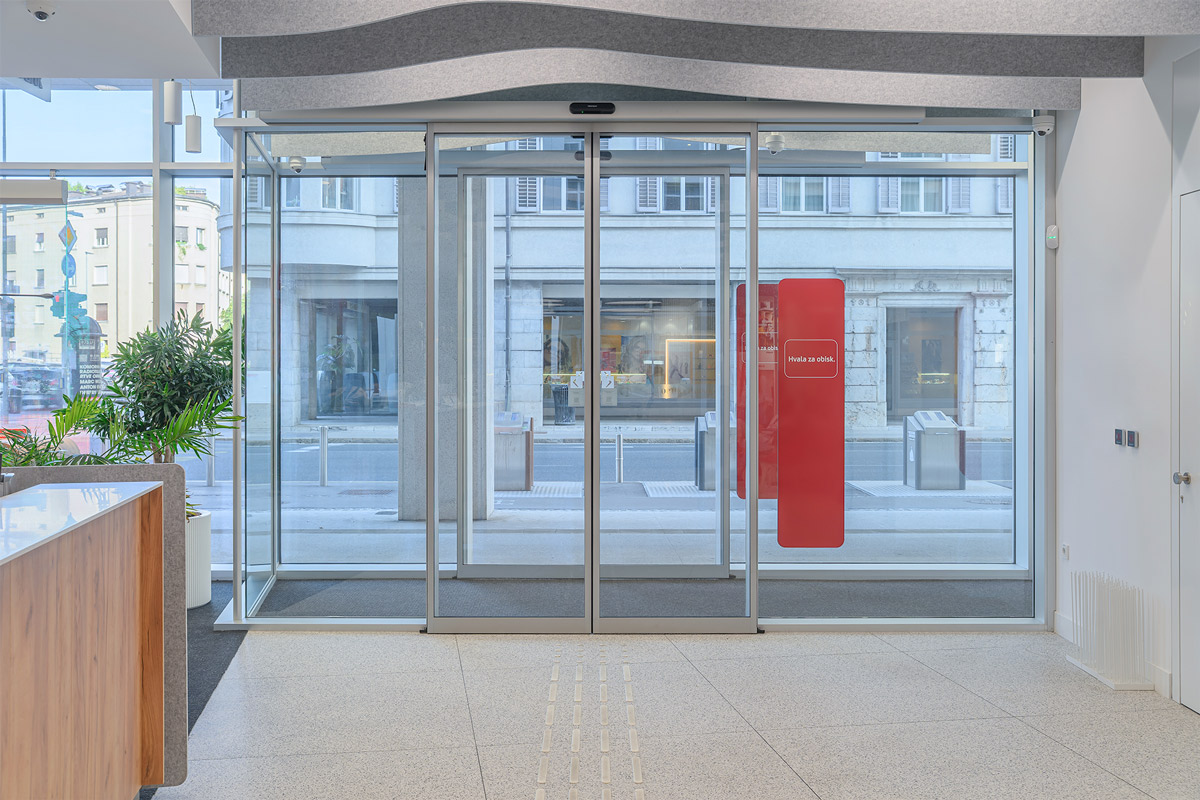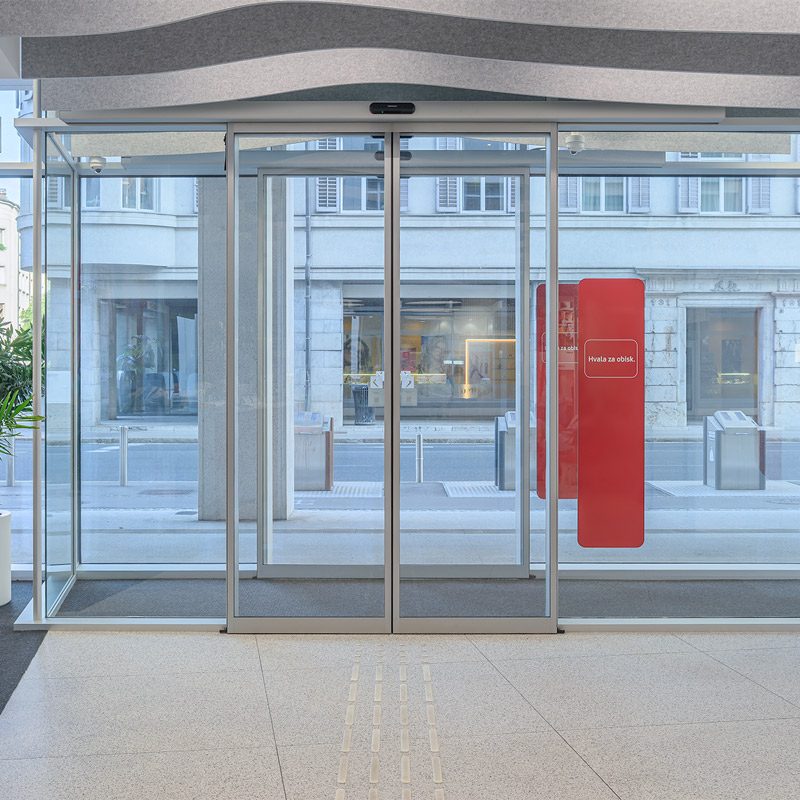 Z vključitvijo avtomatskih vrat banka doseže več kot le funkcionalnost. Njihovi zanesljivi varnostni senzorji in nadzorovan dostop zagotavljajo tudi varno delovanje. Končni rezultat je prostor, ki deluje odprto, učinkovito in zaupanja vredno – v skladu z vrednotami sodobnega bančništva.