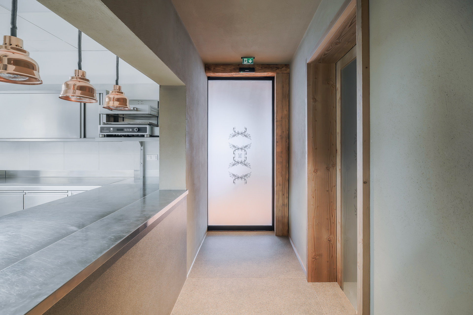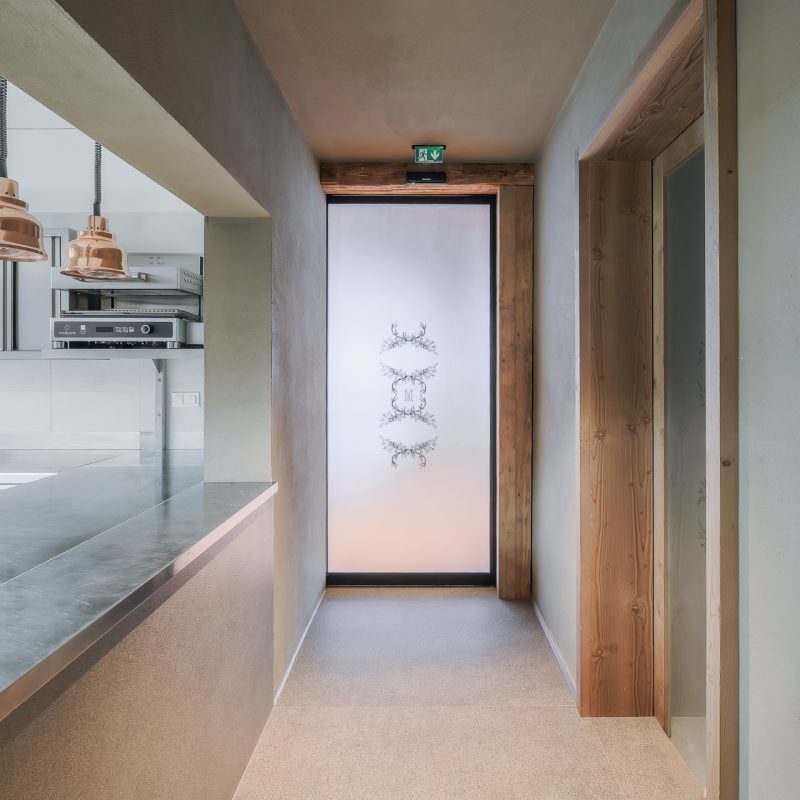 V ozkih hodnikih Vile Muhr šteje vsak centimeter. Prav tu vrata 300 naredijo razliko. Njihova drsna krila za odpiranje ne potrebujejo dodatnega prostora, kar omogoča nemoteno in učinkovito gibanje v in iz kuhinje ter restavracije.