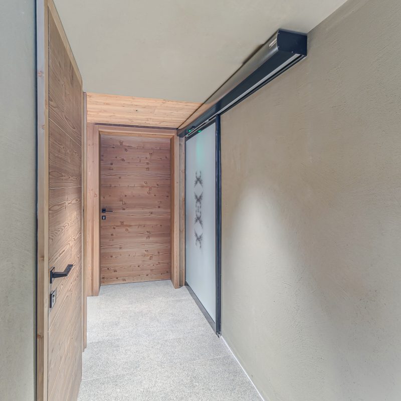 Avtomatska drsna vrata 300 v Vili Muhr so dober primer, kako tehnične rešitve podpirajo arhitekturo in vsakodnevno uporabo. Izboljšujejo pretok gibanja, ohranjajo zasebnost in popolno dopolnjujejo celostno zasnovo prostora.