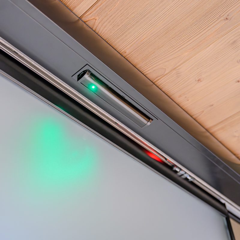 Integracija sistema Smart Switch preprečuje nepotrebno aktivacijo vrat ter omogoča brezstično odpiranje, kar izboljšuje tako higieno kot uporabniško izkušnjo.