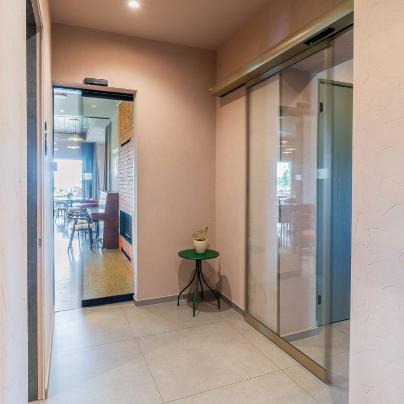 Vgradnja avtomatskih drsnih vrat 300 v butičnem resortu Vinski raj Glavinič je odličen primer, kako prostore ločiti, a jih hkrati ohraniti povezane, optimizirati vhode za čim večjo funkcionalnost ter zagotavljati visoke higienske standarde v bolj pohodnih območjih.