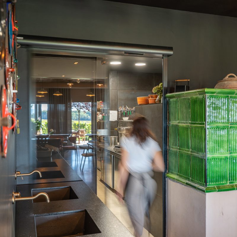V Vinskem raju Glavinič povezujejo kuhinjo, jedilnico in teraso ter omogočajo tekoče in učinkovito gibanje osebja. Ker imajo zaposleni pogosto polne roke, avtomatsko odpiranje zagotavlja enostavno prehajanje iz prostora v prostor.